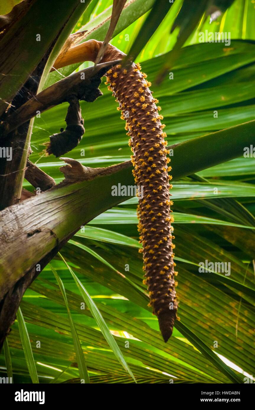 Sea Coconut Or Coco De Mer Double Coconut Lodoicea Maldivica With Male Flowers Are Catkin Like Stock Photo Picture And Royalty Free Image Image 48640804